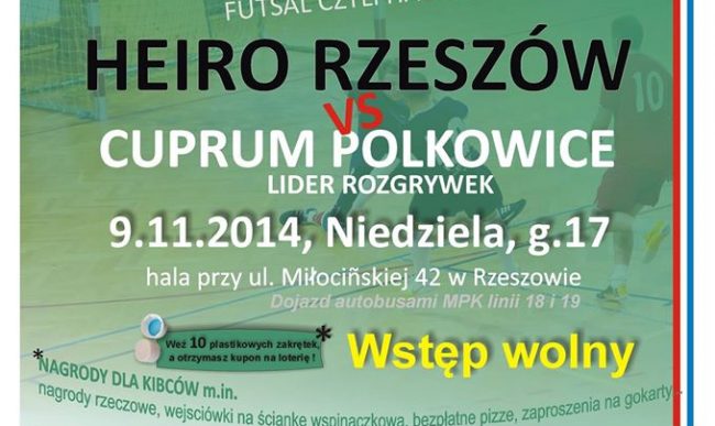W meczu 7 kolejki 1 ligi futsalu Heiro uległo liderowi rozgrywek, Cuprum Polkowice 1-2. (więcej…)